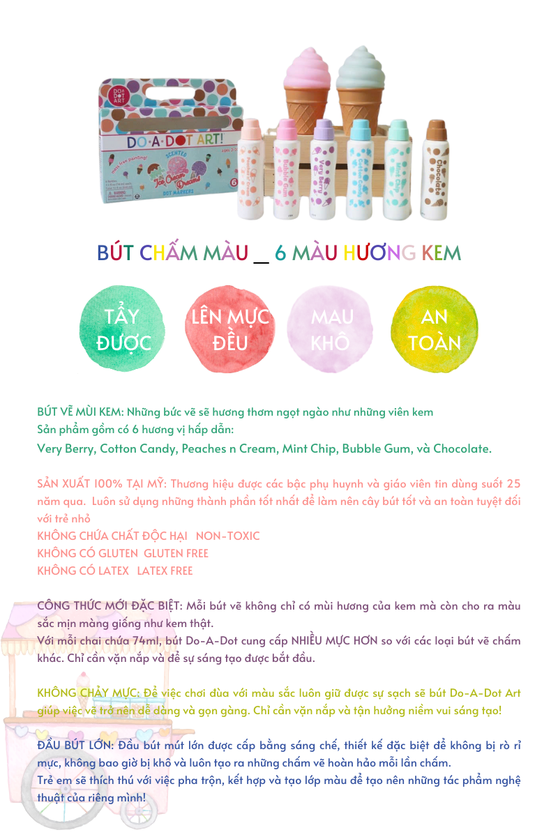 Bút chấm màu, an toàn cho bé - Do A Dot Art - 6 màu vị kem