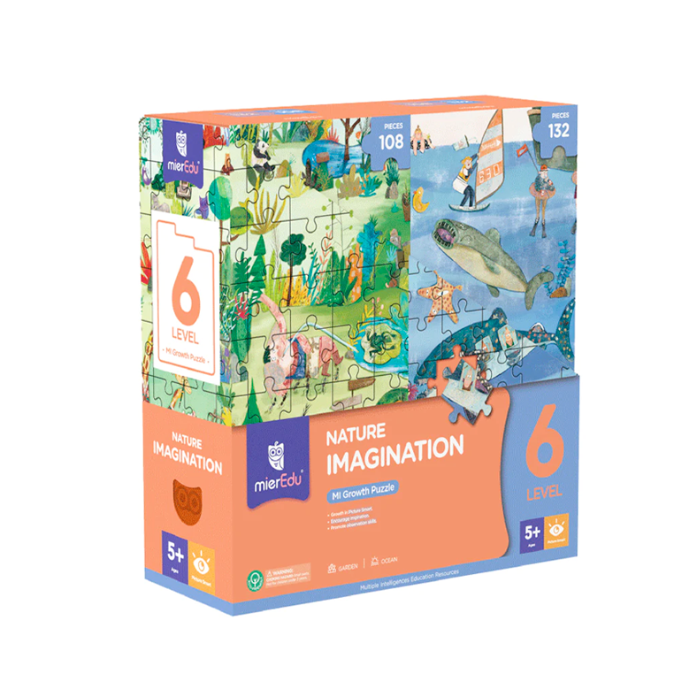 MI Growth Puzzle Level 6 – Nature Imagination đưa trẻ vào một thế giới thiên nhiên tưởng tượng với những minh họa phong phú, đầy màu sắc và chi tiết.