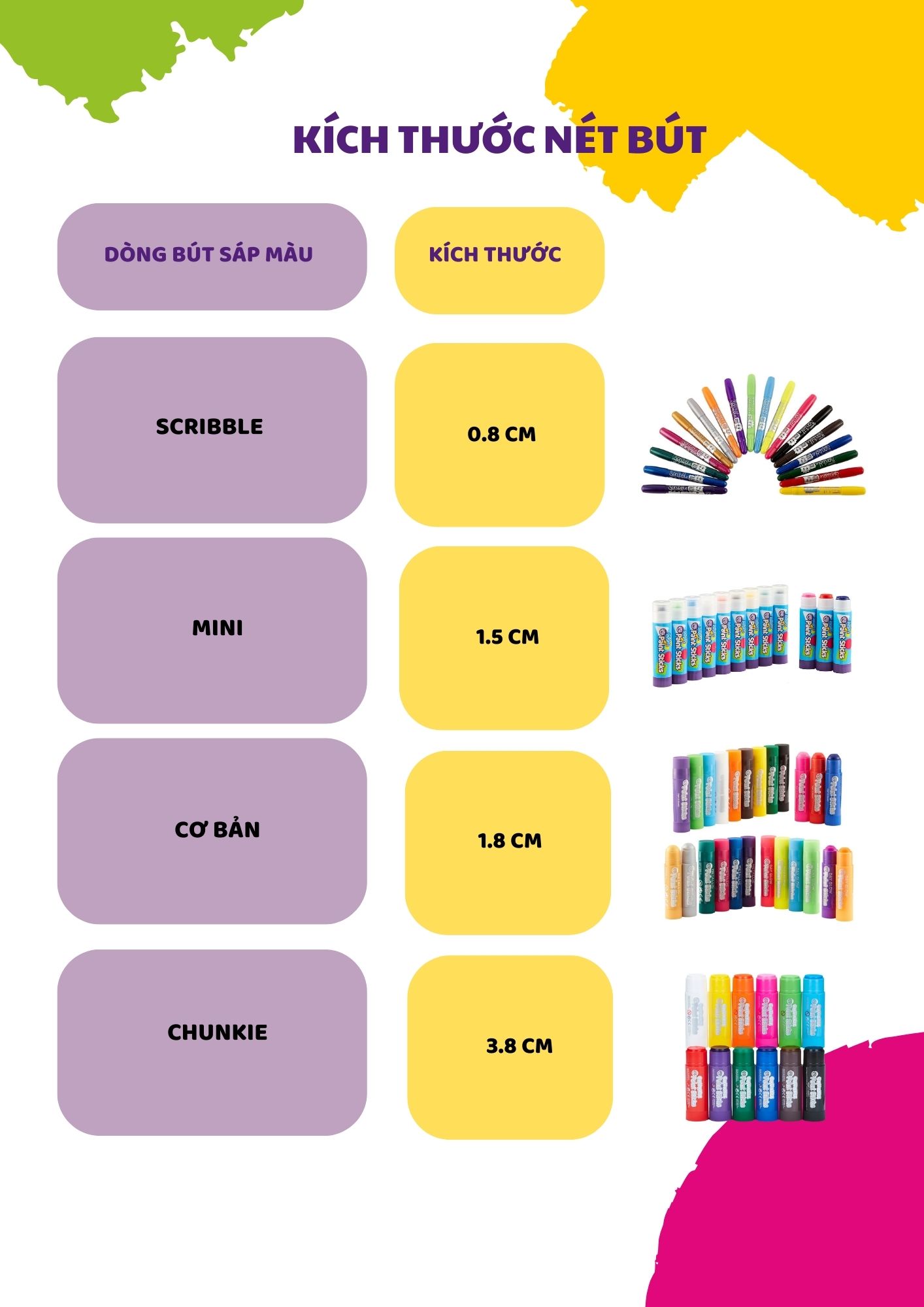 - Đa năng: vừa vẽ giấy như bút sáp, vừa sáng tạo trên các chất liệu khác như màu nước