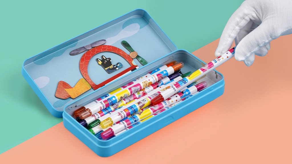 Thiết kế dạng hộp kim loại nhỏ gọn giúp bé dễ dàng mang theo khi đi chơi, đi học hay du lịch cùng gia đình. Bé có thể chơi trực tiếp trên bề mặt hộp hoặc dính nam châm lên tủ lạnh, bảng từ…