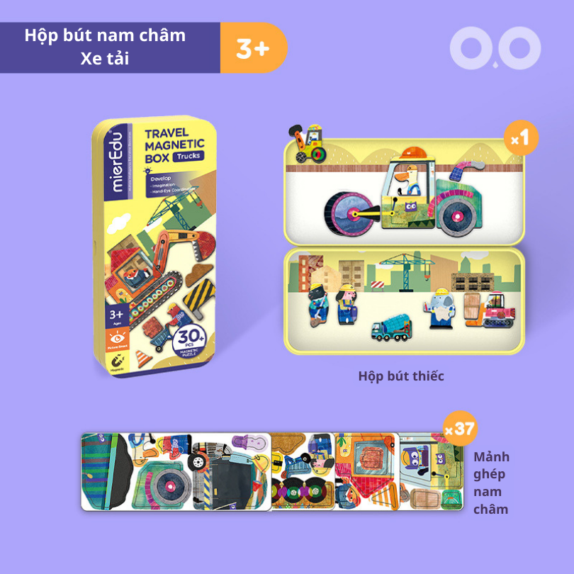 Với hơn 30 mảnh nam châm nhiều màu sắc cùng 2 bối cảnh sinh động, trẻ có thể ghép hình, sắp xếp và tưởng tượng ra những hành trình thú vị – từ bay lên bầu trời đến lướt trên mặt đất.