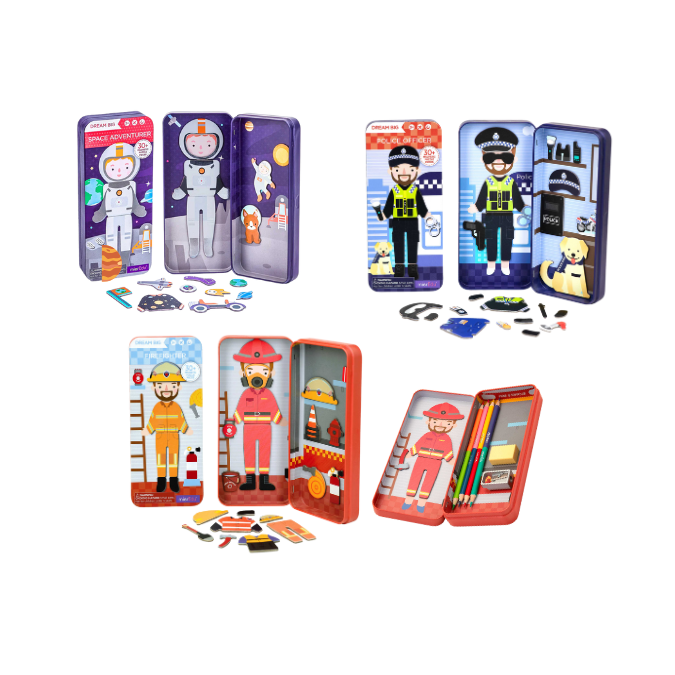 Lấy cảm hứng từ Yayoi Kusama, Marie Curie, Neil Alden Armstrong và Charles Robert Darwin, những chiếc hộp bút nam châm này được thiết kế để khuyến khích trẻ em có những ước mơ to lớn.