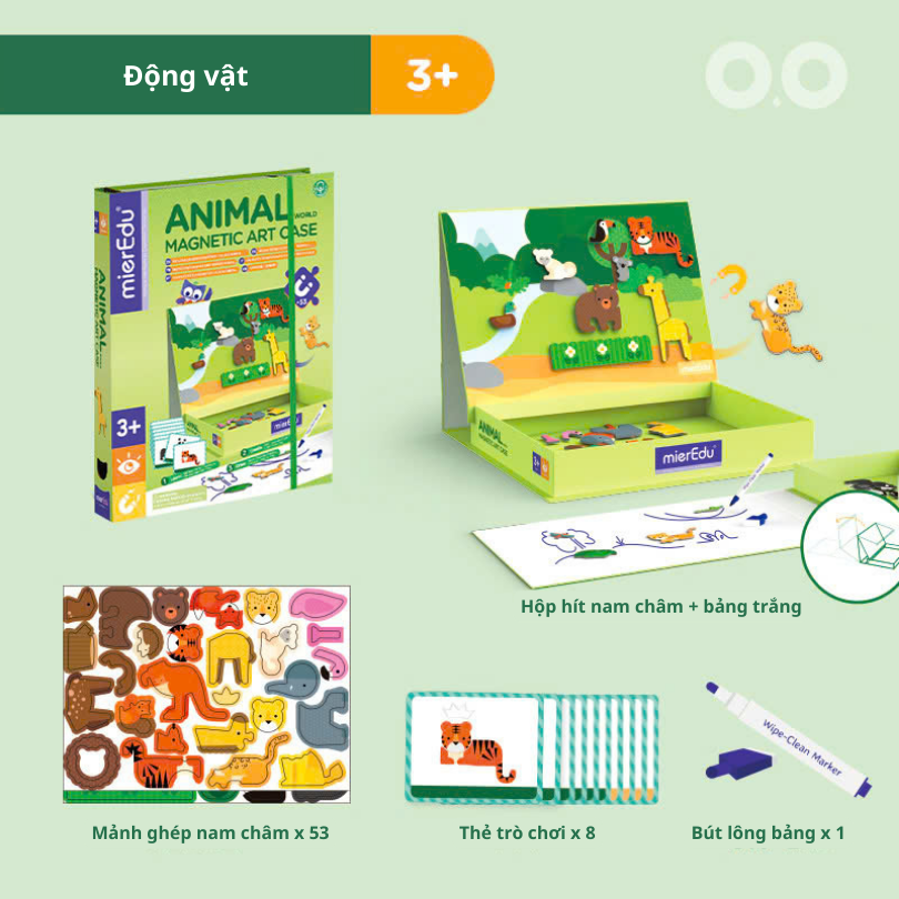 Magnetic Art Case – Animal World cho phép trẻ khám phá thiên nhiên kỳ thú qua việc ghép hình các loài động vật. Sản phẩm tích hợp bảng từ và bút lau sạch giúp bé vừa học, vừa chơi một cách sáng tạo – lý tưởng cho bé đam mê thế giới động vật.