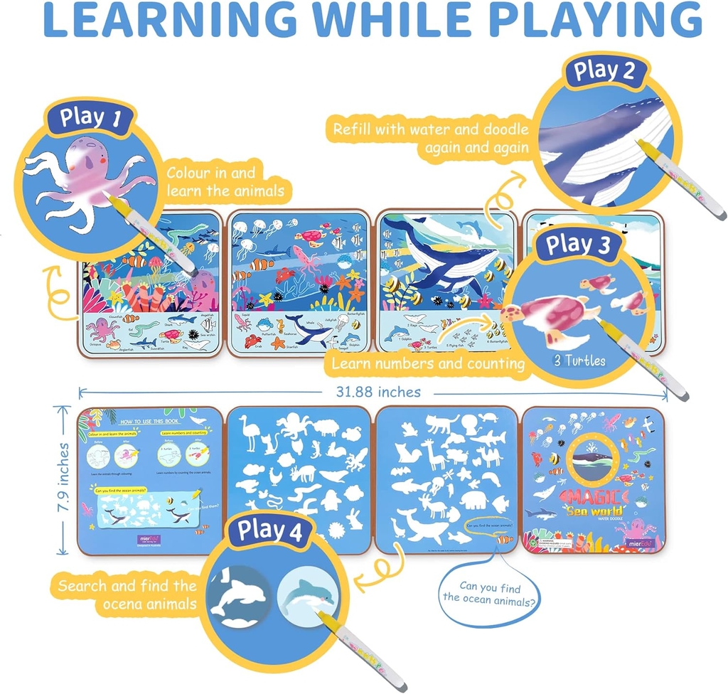 Magic Water Doodle Book – Ocean là cuốn sách vẽ nước thông minh giúp trẻ khám phá thế giới động vật nào trên cạn hay dưới nước